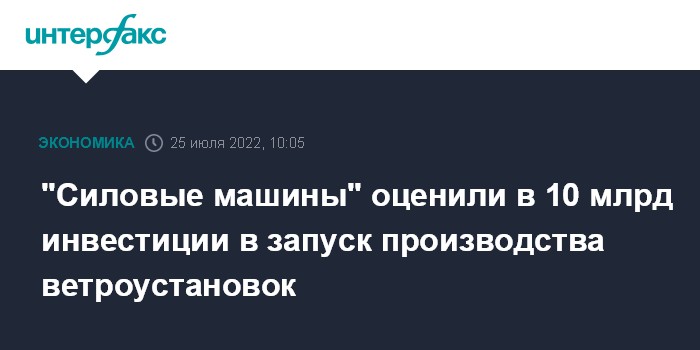 Москва. 25 июля. INTERFAX.RU - АО "Силовые машины" прорабатывает возможность производства ветроустановок мощностью 4-6 МВт, сообщил журналистам гендиректор компании Александр Конюхов.