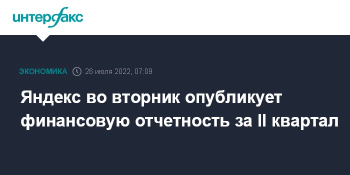 Яндекс во вторник опубликует финансовую отчетность за II квартал