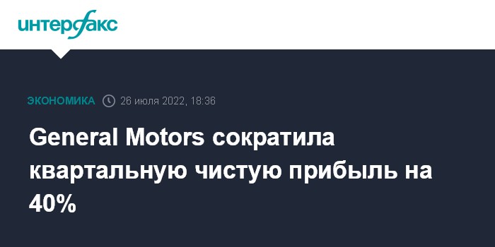 Москва. 26 июля. INTERFAX.RU - Крупнейший американский автопроизводитель General Motors (GM) сократил чистую прибыль на 40% во втором квартале 2022 года, при этом скорректированный показатель не оправдал ожиданий рынка.