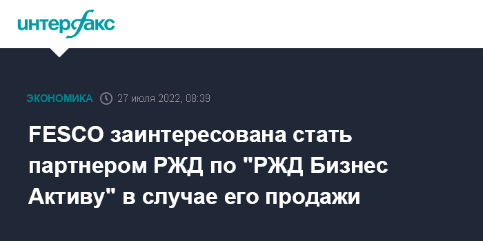 "Нам ничего неизвестно о таких планах (продажи "РЖД-БА" - ИФ), мы поддерживаем конструктивные деловые отношения с РЖД и его дочерними компаниями, в том числе с "Бизнес Активом". Если РЖД примут решение о продаже части "Бизнес Актива", нам было бы интересно стать их партнерами в этом проекте", - сообщает FESCO.