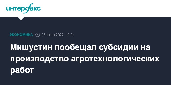 Мишустин пообещал субсидии на производство агротехнологических работ