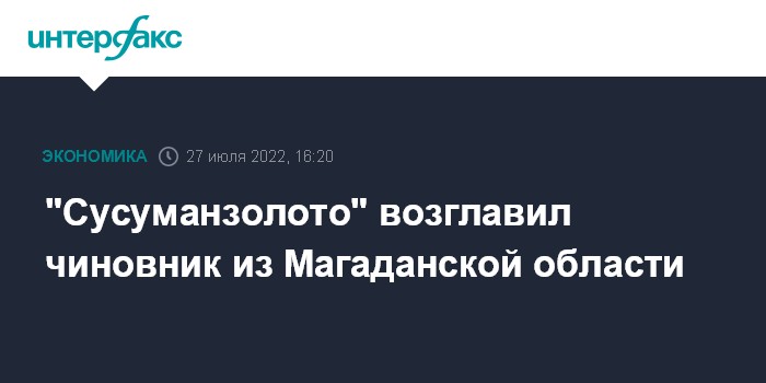 Москва. 27 июля. INTERFAX.RU - По сведениям портала NedraDV, руководителем золотодобывающей компании "Сусуманзолото" назначен Олег Косолапов - министр природных ресурсов Магаданской области, а Александр Чугунов, возглавлявший компанию с 2016 года, покинул свой пост.
