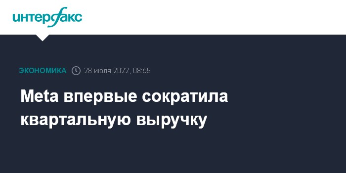 В апреле-июне 2022 года выручка Meta сократилась на 1%, до $28,82 млрд по сравнению с $29,08 млрд за аналогичный период прошлого года. Эксперты Уолл-стрит в среднем прогнозировали квартальную выручку Meta на уровне $28,9 млрд.