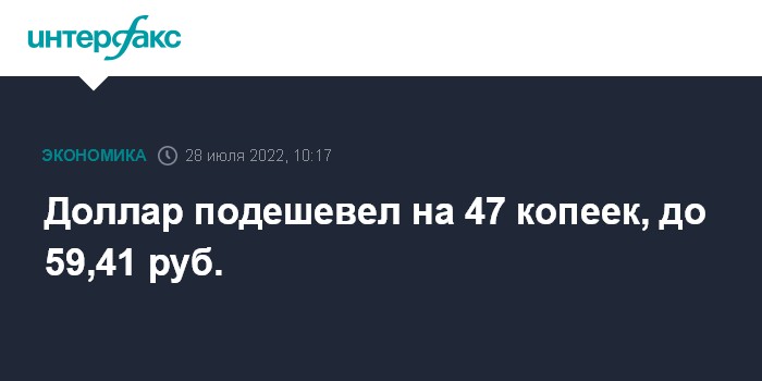 Доллар подешевел на 47 копеек, до 59,41 руб.