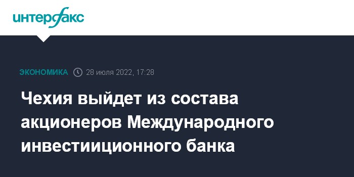 МИБ сообщил, что 27 июля получил официальное уведомление о том, что с 27 января 2023 года Чешская республика прекратит быть акционером банка.