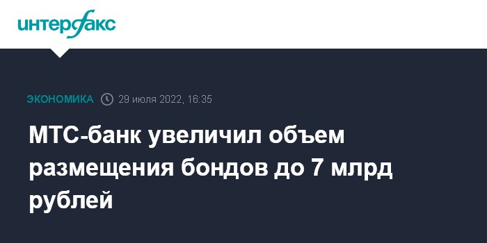 МТС-банк увеличил объем размещения бондов до 7 млрд рублей