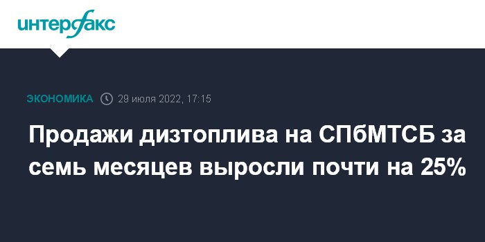 Продажи дизтоплива на СПбМТСБ за семь месяцев выросли почти на 25%