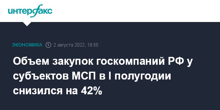 Объем закупок госкомпаний РФ у субъектов МСП в I полугодии снизился на 42%