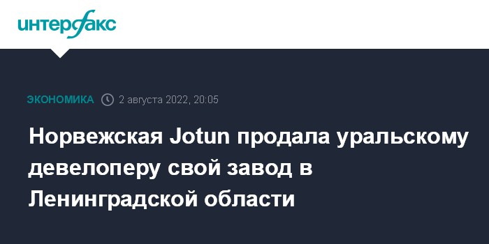 Норвежская Jotun продала уральскому девелоперу свой завод в Ленинградской области