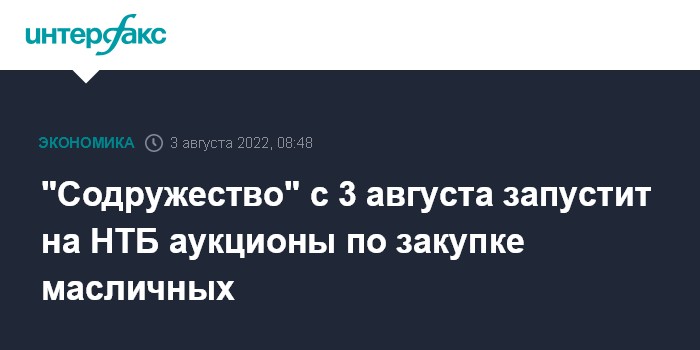 Москва. 3 августа. INTERFAX.RU - ГК "Содружество", один из ведущих переработчиков масличных культур в России, с 3 августа запустит на Национальной товарной бирже (НТБ, входит в группу "Московская биржа") товарные аукционы по закупке масличных культур и начнет с рапса.