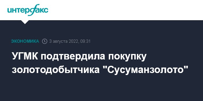 Москва. 3 августа. INTERFAX.RU - "Уральская горно-металлургическая компания" (УГМК) подтвердила покупку магаданского золотодобытчика "Сусуманзолото" и сообщила, что планирует наращивать добычу россыпного и рудного золота.