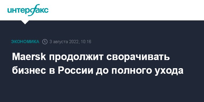 Москва. 3 августа. INTERFAX.RU - Датская транспортно-логистическая компания A.P. Moeller-Maersk A/S продолжает сворачивать операции в России с намерением в конечном итоге покинуть страну, сказано в отчете компании за II квартал 2022 года.
