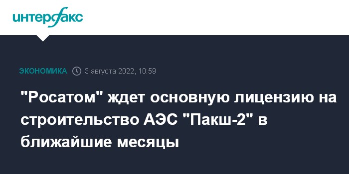 Москва. 3 августа. INTERFAX.RU - "Росатом" рассчитывает получить основную лицензию на строительство АЭС "Пакш-2" в Венгрии в ближайшие месяцы, сообщил журналистам гендиректор госкорпорации Алексей Лихачев.