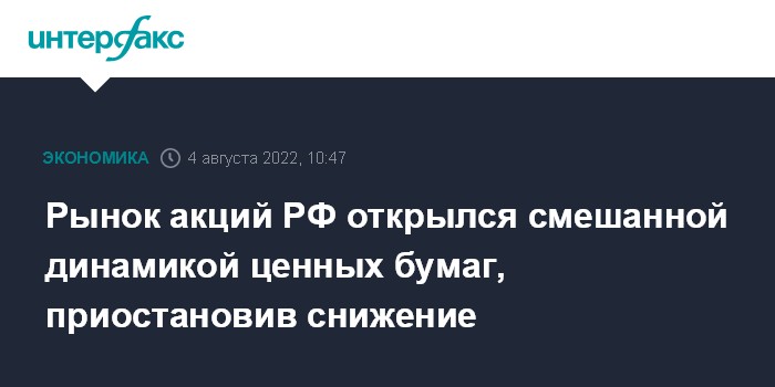 Москва. 4 августа. INTERFAX.RU - Рынок акций РФ открылся в четверг смешанной динамикой цен большинства blue chips на фоне улучшения ситуации на мировых рынках капитала; заметно выросли акции VEON после публикации финотчета за II квартал 2022 года.