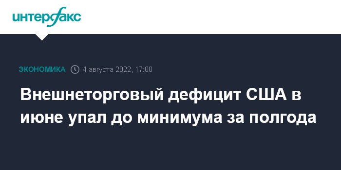 Москва. 4 августа. INTERFAX.RU - Дефицит внешнеторгового баланса США в июне снизился на 6,2% - до $79,61 млрд, сообщило министерство торговли страны. Это минимальный уровень за полгода.