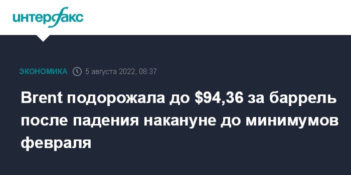 Brent подорожала до $94,36 за баррель после падения накануне до минимумов февраля