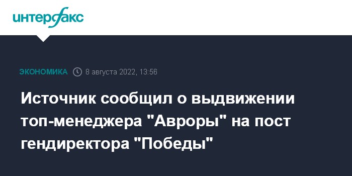 Источник сообщил о выдвижении топ-менеджера "Авроры" на пост гендиректора "Победы"