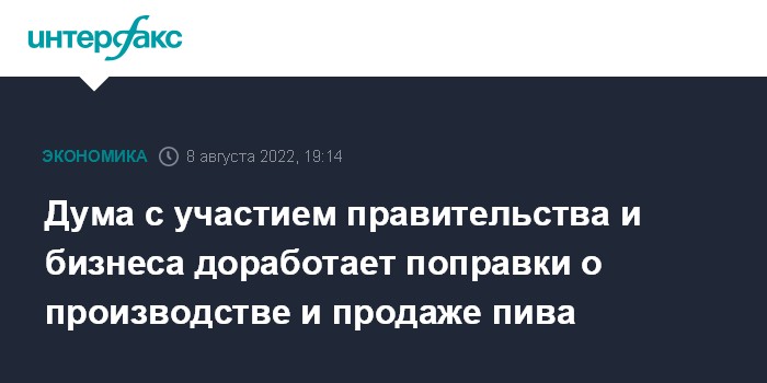Дума с участием правительства и бизнеса доработает поправки о производстве и продаже пива