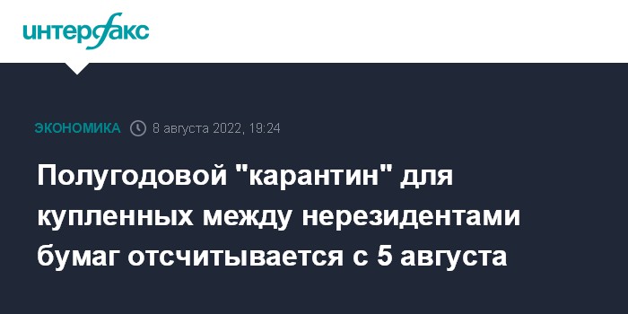 Полугодовой "карантин" для купленных между нерезидентами бумаг отсчитывается с 5 августа
