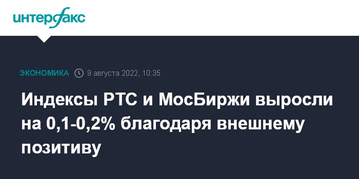 Индексы РТС и МосБиржи выросли на 0,1-0,2% благодаря внешнему позитиву