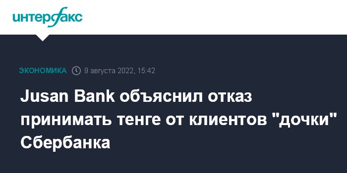 9 августа Jusan Bank и Forte Bank перестали принимать платежи и переводы в нацвалюте от клиентов "дочки" Сбербанка в Казахстане. При этом ранее стало известно, что управление по контролю над иностранными активами Минфина США (OFAC) продлило срок завершения сделок с казахстанским Сбербанком до 11 октября 2022 года. Казахстанское Агентство по регулированию и развитию финансового рынка (АРРФР) сообщало, что Сбербанк в Казахстане в этот период будет работать штатно и клиентам будут доступны операции с платежами и переводами без каких-либо ограничений.