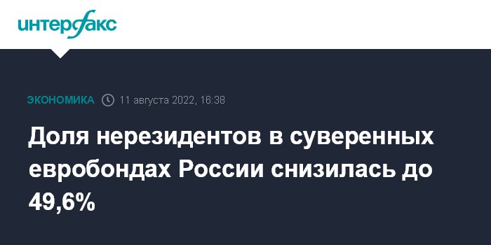 Это минимальная доля нерезидентов в российских еврооблигациях с начала 2019 года, когда она составляла 45,6%.