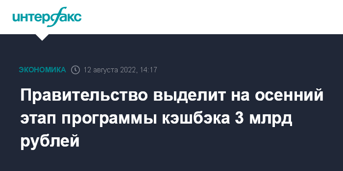 Правительство выделит на осенний этап программы кэшбэка 3 млрд рублей