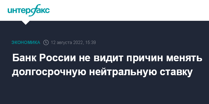 Банк России не видит причин менять долгосрочную нейтральную ставку