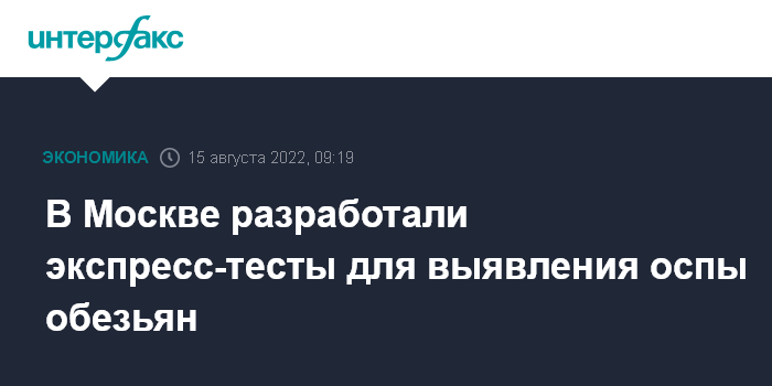 Москва. 15 августа. INTERFAX.RU - Компания "Имбиан Лаб", которая работает в особой экономической зоне "Технополис "Москва", разработала тест-системы для быстрого выявления вируса оспы обезьян и антител к нему, сообщил через пресс-службу руководитель департамента инвестиционной и промышленной политики столицы Владислав Овчинский.