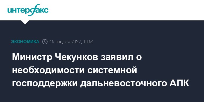 Министр Чекунков заявил о необходимости системной господдержки дальневосточного АПК
