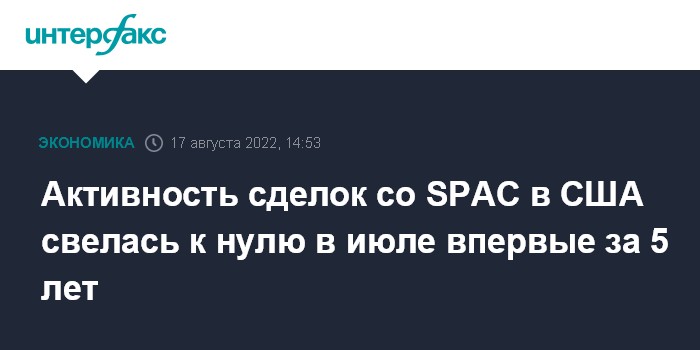 Активность сделок со SPAC в США свелась к нулю в июле впервые за 5 лет