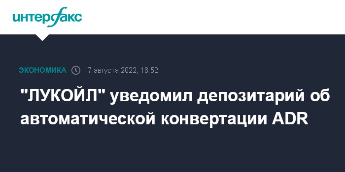 Москва. 17 августа. INTERFAX.RU - "ЛУКОЙЛ" направил депозитарию - АО КБ "Ситибанк" - уведомление о необходимости совершения действий, направленных на автоматическую конвертацию ADR в локальные акции компании, сообщила НК.