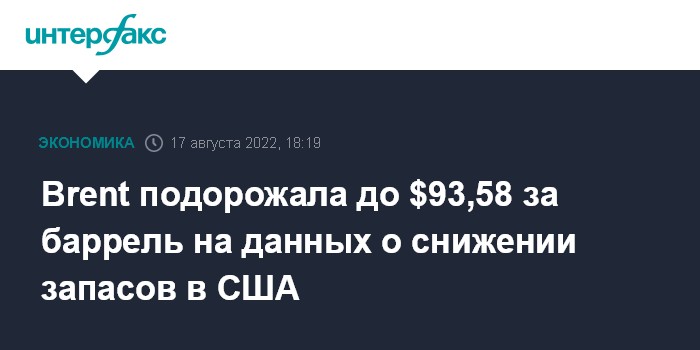 Brent подорожала до $93,58 за баррель на данных о снижении запасов в США