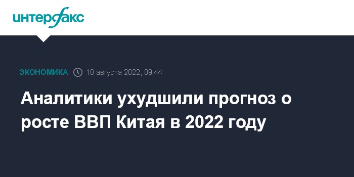 Москва. 18 августа. INTERFAX.RU - Аналитики банка Goldman Sachs ухудшили прогноз роста китайской экономики в 2022 году до 3% с 3,3% на фоне роста числа заражений коронавирусом и слабой статистики, сообщает Bloomberg.