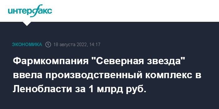 НАО "Северная звезда" работает на фармацевтическом рынке России более 25 лет. Фармкомплекс в Ленобласти введен в 2018 году. Компания выпускает свыше 60 наименований лекарственных препаратов и более 120 ассортиментных позиций по направлениям кардиология, неврология, урология, гастроэнтерология и др.