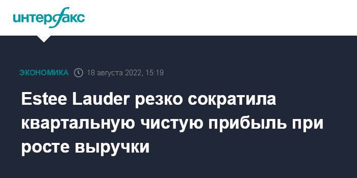 Москва. 18 августа. INTERFAX.RU - Американский производитель косметики и парфюмерии Estee Lauder Cos. Inc. отчитался о резком падении чистой прибыли в четвертом квартале 2022 финансового года, однако скорректированная прибыль и выручка компании оказались лучше прогнозов.