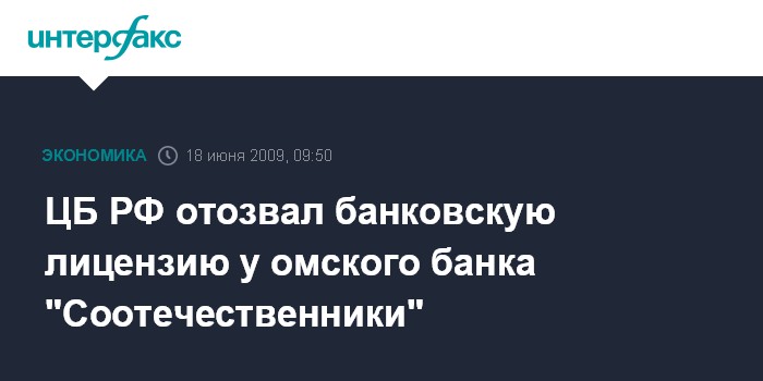 ЦБ РФ отозвал банковскую лицензию у омского банка "Соотечественники"