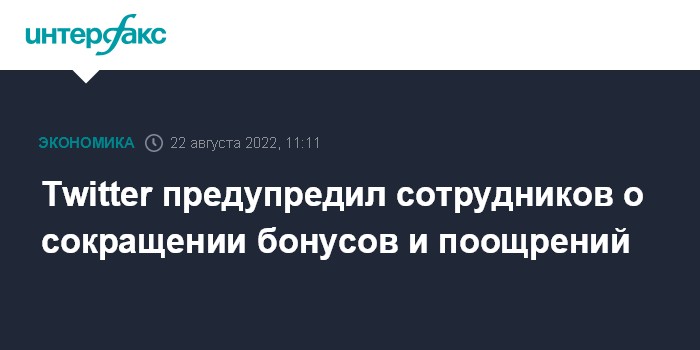 Москва. 22 августа. INTERFAX.RU - Twitter Inc. предупредил сотрудников о сокращении бонусов и поощрений в 2022 году из-за финансовых проблем, пишет The Wall Street Journal со ссылкой на внутреннее письмо компании.