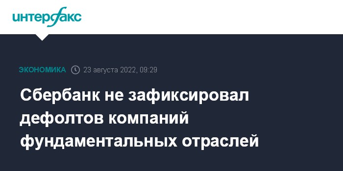 Сбербанк не зафиксировал дефолтов компаний фундаментальных отраслей