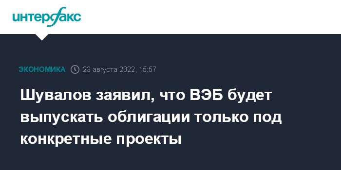 Шувалов заявил, что ВЭБ будет выпускать облигации только под конкретные проекты