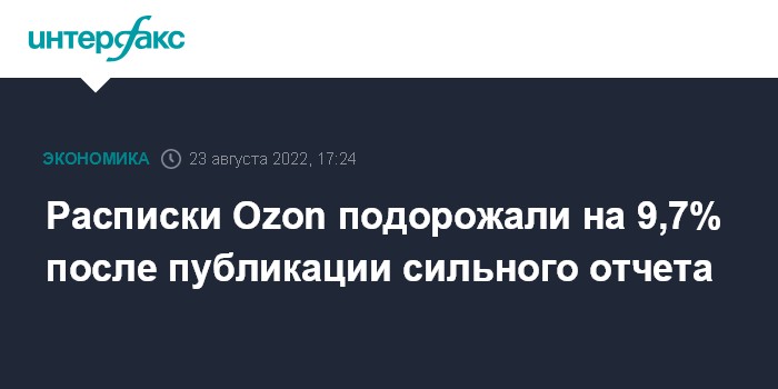 Расписки Ozon подорожали на 9,7% после публикации сильного отчета