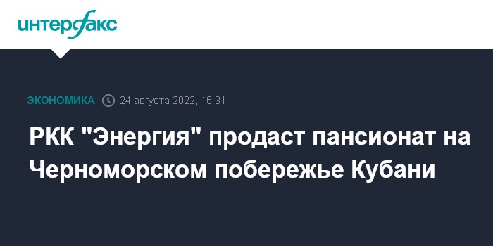 РКК "Энергия" продаст пансионат на Черноморском побережье Кубани