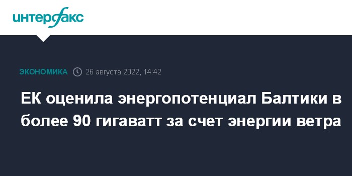 Москва. 26 августа. INTERFAX.RU - По оценке Еврокомиссии, Балтийское море потенциально может производить свыше 90 гигаватт - за счет энергии ветра, заявила министр иностранных дел Германии Анналена Бербок. Ее слова приводит АР.