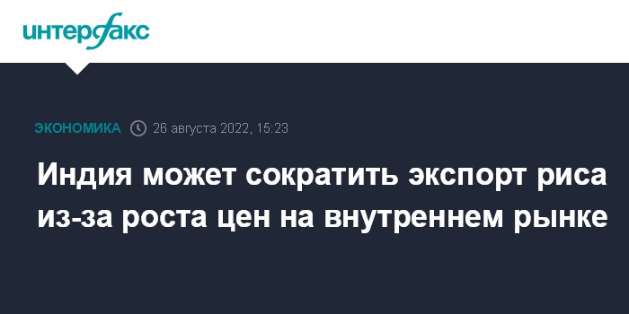 Москва. 26 августа. INTERFAX.RU - Индия, крупнейший поставщик риса в мире, может сократить экспорт этой крупы из-за скачка цен на рис на внутреннем рынке, сообщает Bloomberg со ссылкой на источники.