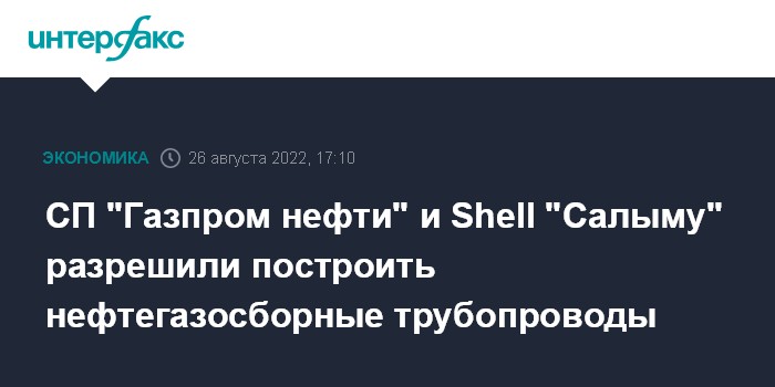 Москва. 26 августа. INTERFAX.RU - Главгосэкспертиза России дала положительное заключение на работы СП "Газпром нефти и Shell - "Салым Петролеум Девелопмент Н.В." (SPD) и по развитию нефтегазосборной трубопроводной системы Западно-Салымского и Ваделыпского нефтяных месторождений в 2023 году.