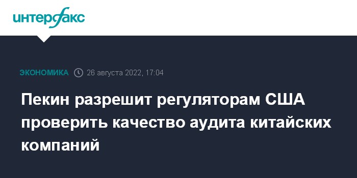 Москва. 26 августа. INTERFAX.RU - Власти Соединенных Штатов и КНР достигли соглашения, которое позволит американским регуляторам проверить качество аудита китайских компаний с листингом в США, сообщила американская Комиссия по ценным бумагам и биржам (SEC).