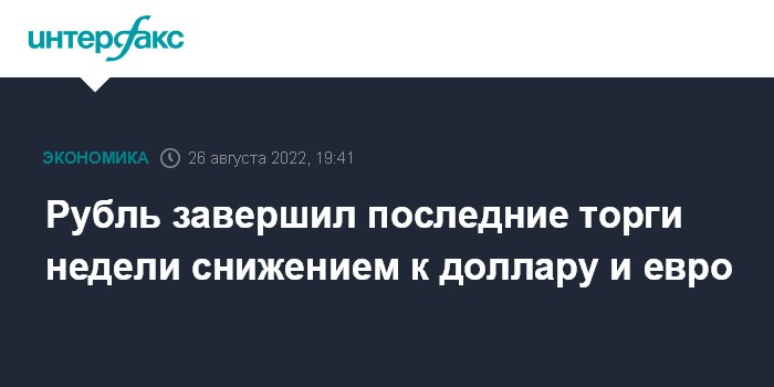 Как отмечают эксперты "Интерфакс-ЦЭА", рубль развернулся вниз и завершил торги пятницы падением к доллару и евро в условиях снижения спроса на рублевую ликвидность после завершения основных налоговых выплат месяца. Кроме того, участники внутреннего валютного рынка попали под влияние уменьшения интереса к риску со стороны глобальных инвесторов после выступления главы Федеральной резервной системы (ФРС) Джерома Пауэлла в Джексон-Хоуле. В четверг и пятницу там проходит ежегодный экономический симпозиум, организуемый Федеральным резервным банком (ФРБ) Канзас-Сити.