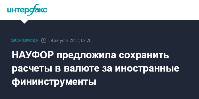 Москва. 29 августа. INTERFAX.RU - Национальная ассоциация участников фондового рынка (НАУФОР) предлагает сохранить возможность рассчитываться в иностранных валютах за иностранные финансовые инструменты, обращающиеся на российском организованном рынке.