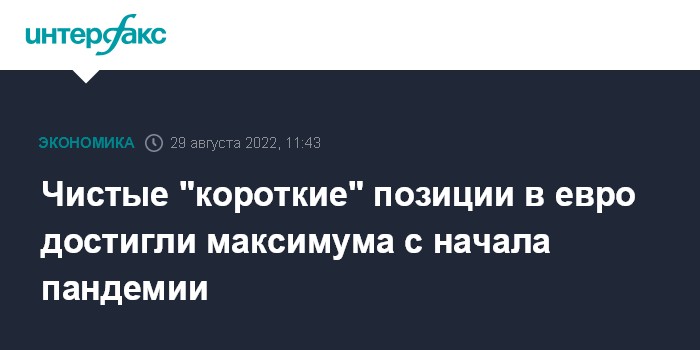 Москва. 29 августа. INTERFAX.RU - Уверенность инвесторов в дальнейшем ослаблении евро растет, число чистых открытых позиций на продажу европейской валюты достигло максимума с начала пандемии COVID-19, пишет Financial Times.