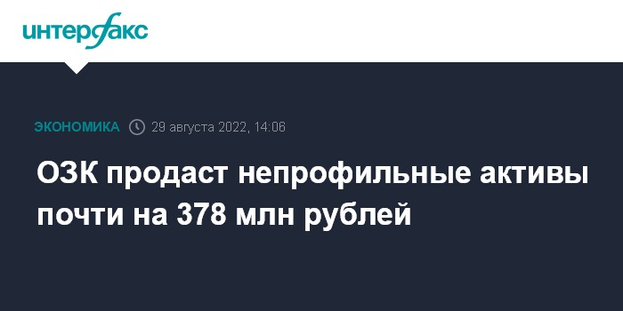Москва. 29 августа. INTERFAX.RU - "Объединенная зерновая компания" (ОЗК) планирует в 2022 году продать непрофильные активы на 377,8 млн рублей, сообщается в материалах компании.